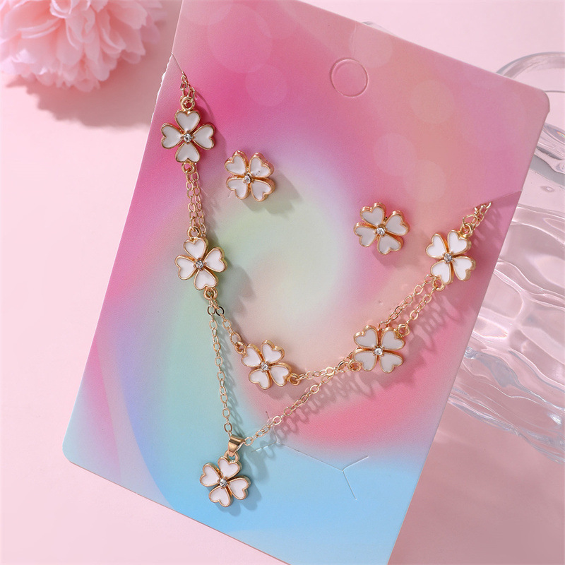 クロスボーダー日韓子供アクセサリーセット花ジルコンネックレスブレスレット女の子四葉ピアスファッションアクセサリーセット