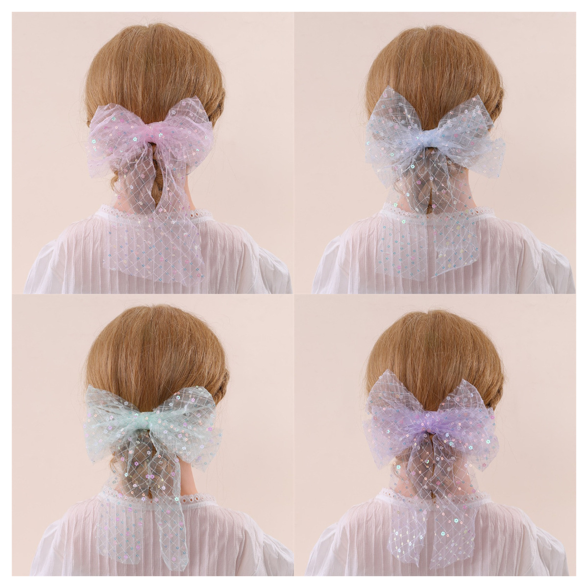 クロスボーダーの子供の新型のスパンコールの長い髪飾りネットの糸の大きい蝶の頭飾りの女性の超仙の王女の頭のアヒルの口は女性を挟みます。