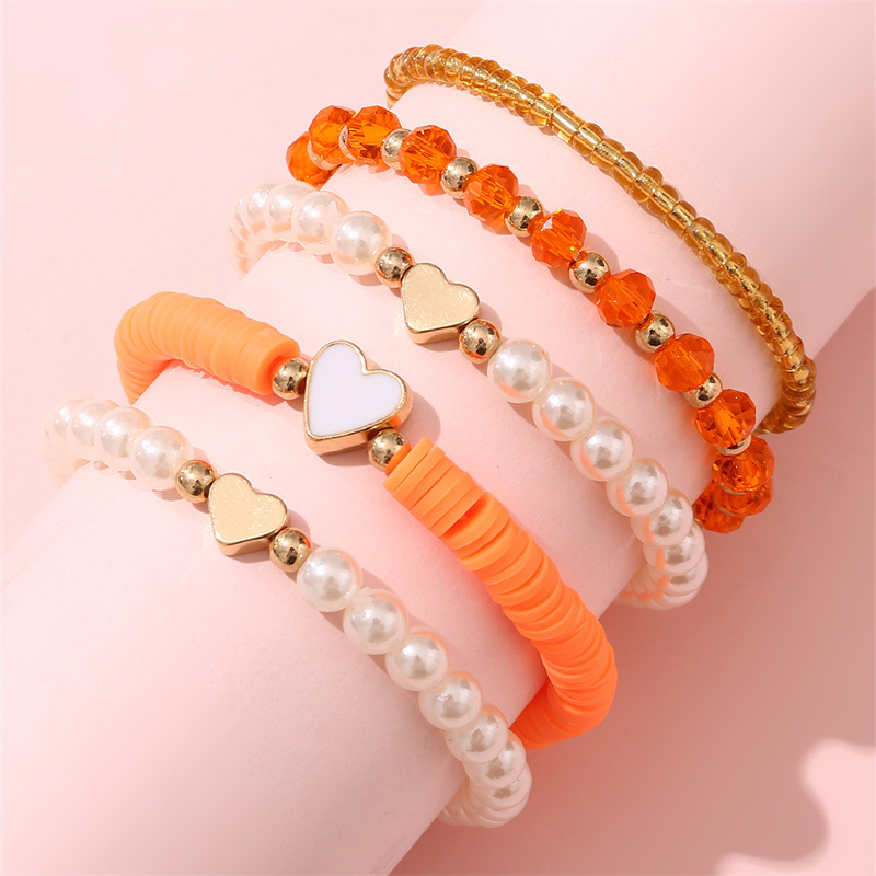 国境を越えた新しい手飾りの甘い風は真珠の米の玉の手作りの数珠の愛の蝶結びの五角星の子供のブレスレットに似せます。