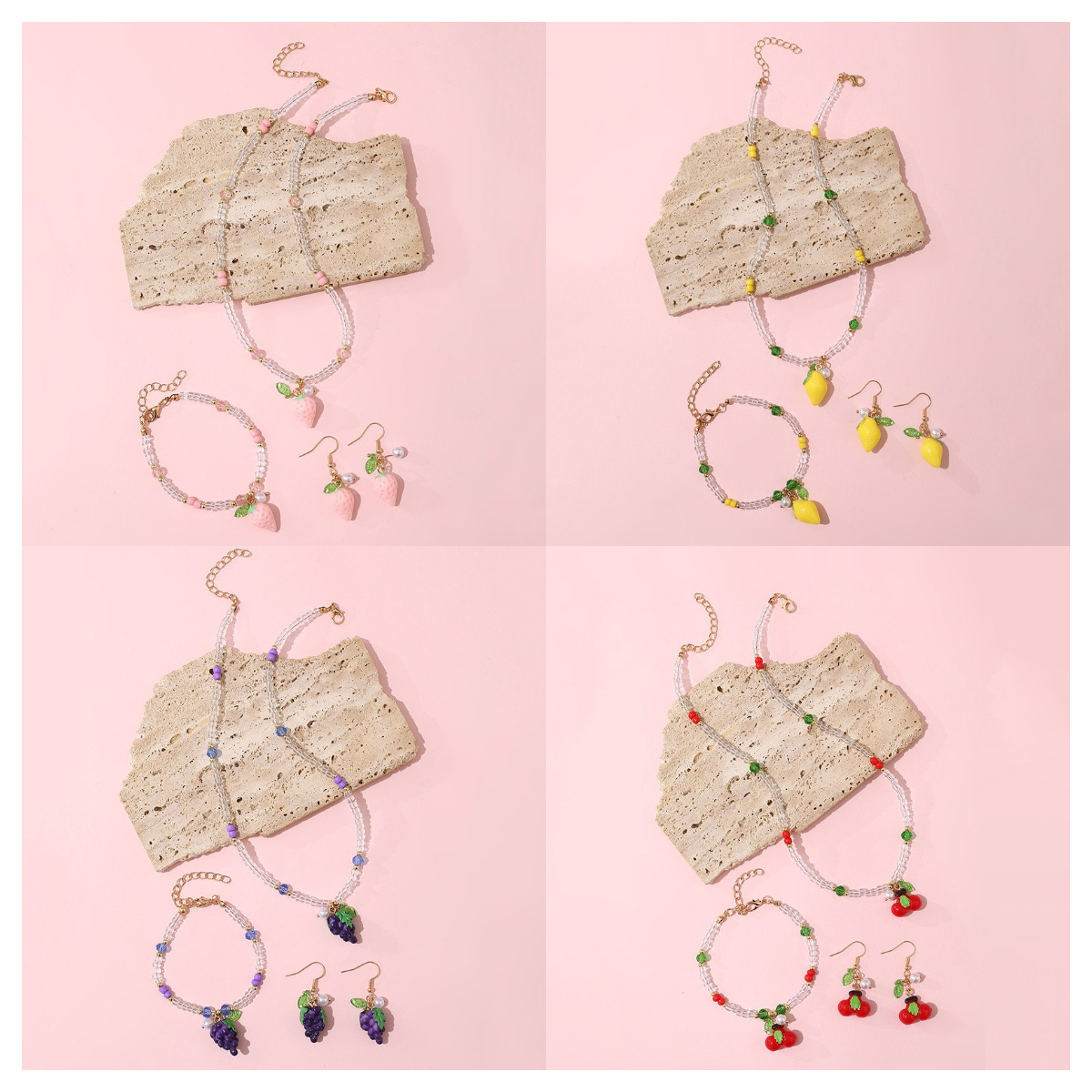 国境を越えた欧米の子供アクセサリーセットさくらんぼブドウ果物ペンダント海星ネックレスブレスレットセット女の子アクセサリー