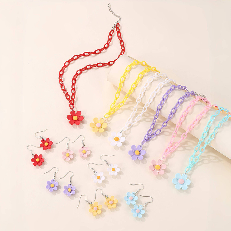 国境を越えた欧米の児童宝飾品セットアクリル花ネックレスイヤリング少女カラーチェーン秋冬初宝飾品