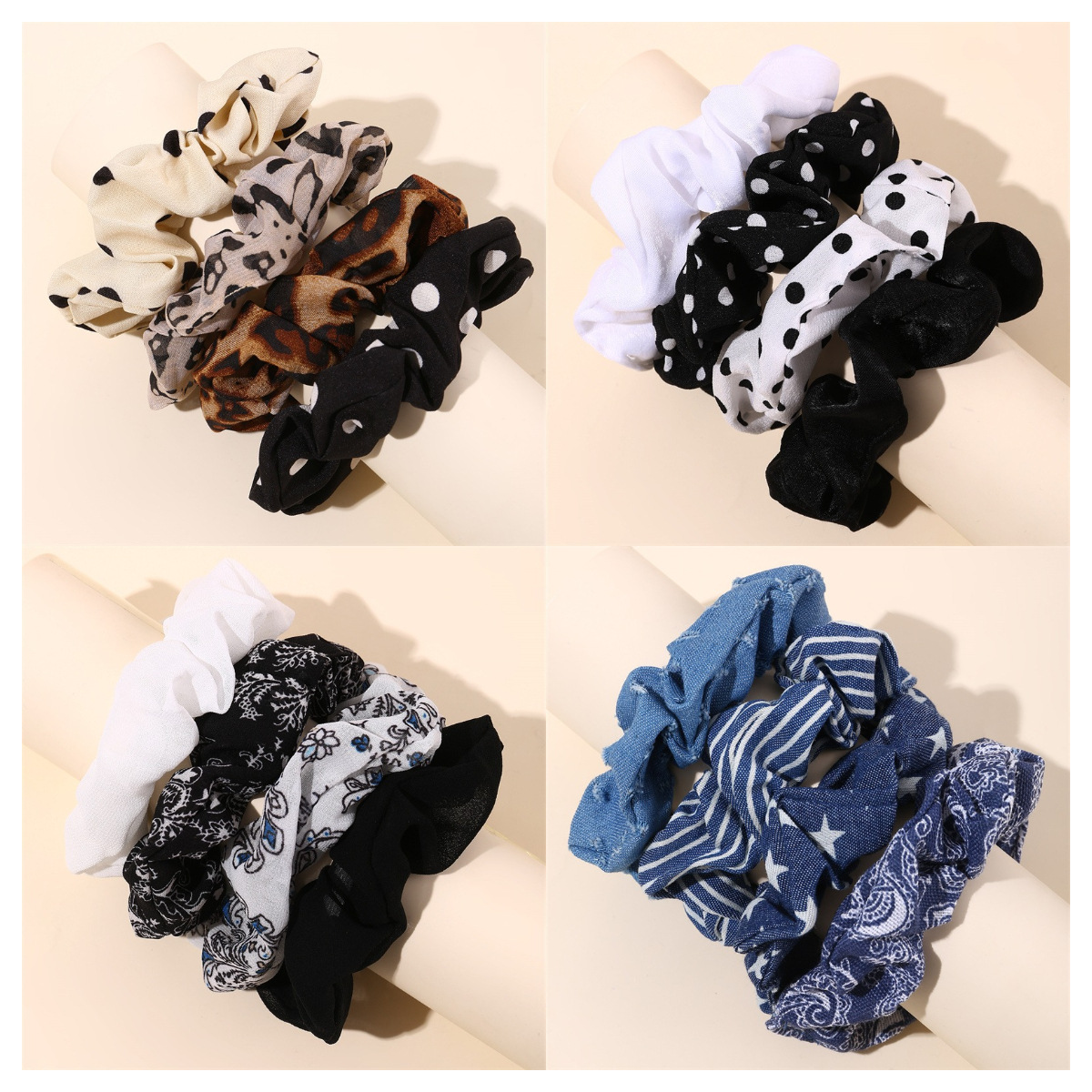 フランス式の白黒の波の点のシュシュの女の子は団子の頭のひもの黒い白い波の点の大腸のシュシュの4つのセットを刺します。