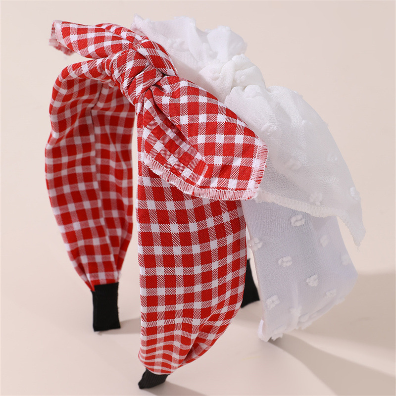 新商品の韓国のカチューシャの女の子の香港風の蝶結びのウサギの耳の甘い布の芸のシンプルで広い辺の波の点のカチューシャの女性