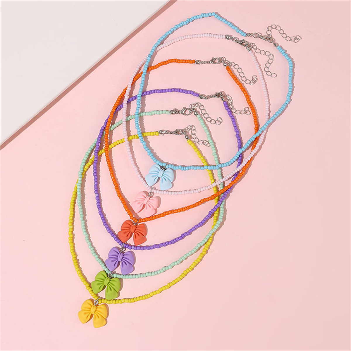 子供の新しいキャンディー色の手作りのビーズの蝶結びのネックレスの少女のビーズの鎖のファッションの首の鎖の女性の装飾品