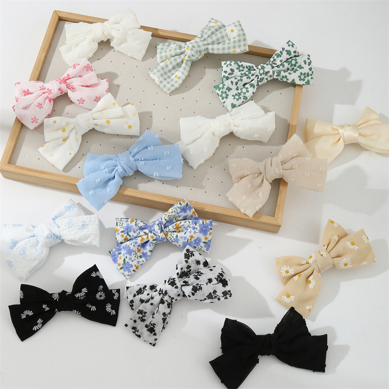 クロスボーダー悦珊の新型髪飾りカラー布芸砕花蝶結び二層シンプル風可愛い子供用ヘアピンセット