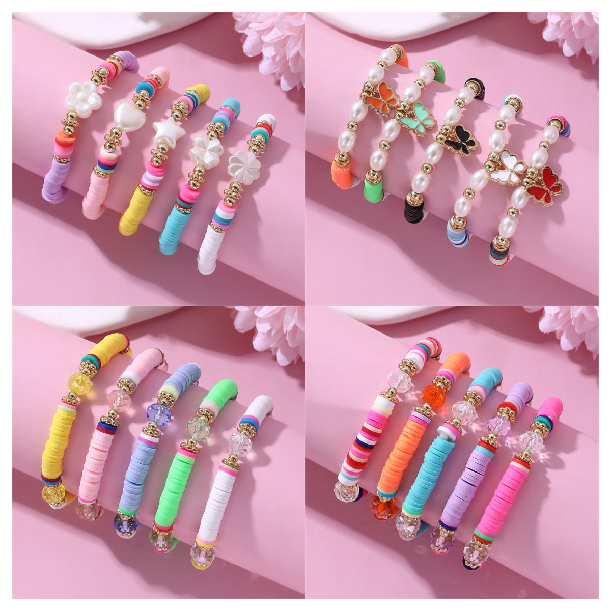 国境を越えた欧米のボヘミアンの子供の柔らかい陶器のブレスレットの油を垂らす蝶の女の子のカラー系の柔らかい陶器のブレスレットの5つのセット