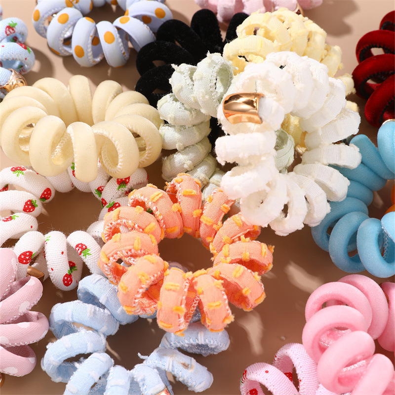 クロスボーダーの新型布芸の電話線の髪の輪は髪の毛の筋のひもの子供を刺して髪のひものアクセサリーの卸売りを傷つけません。