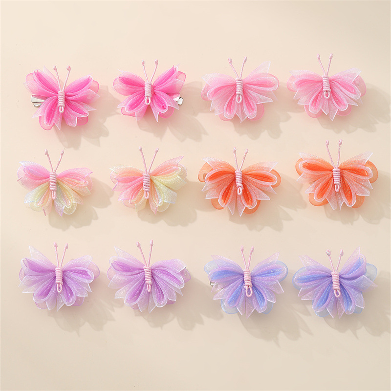 夏の新型の清新な手作りの幻彩ネットの小さい蝶のヘアピンの越境の子供のヘアピンの女の子の蝶の髪飾り