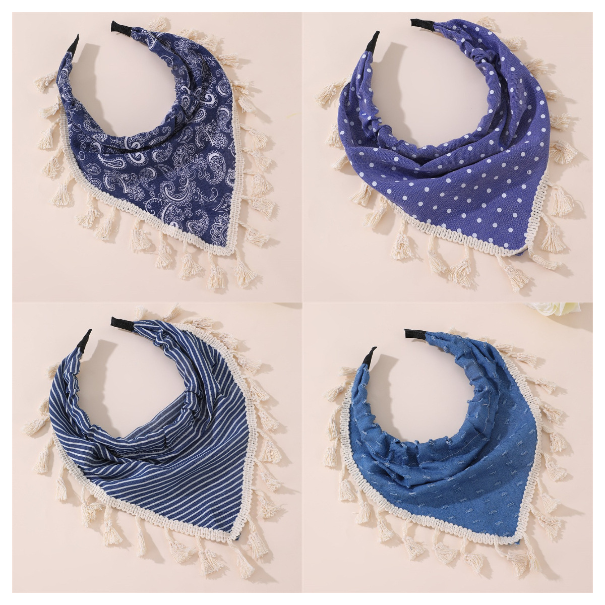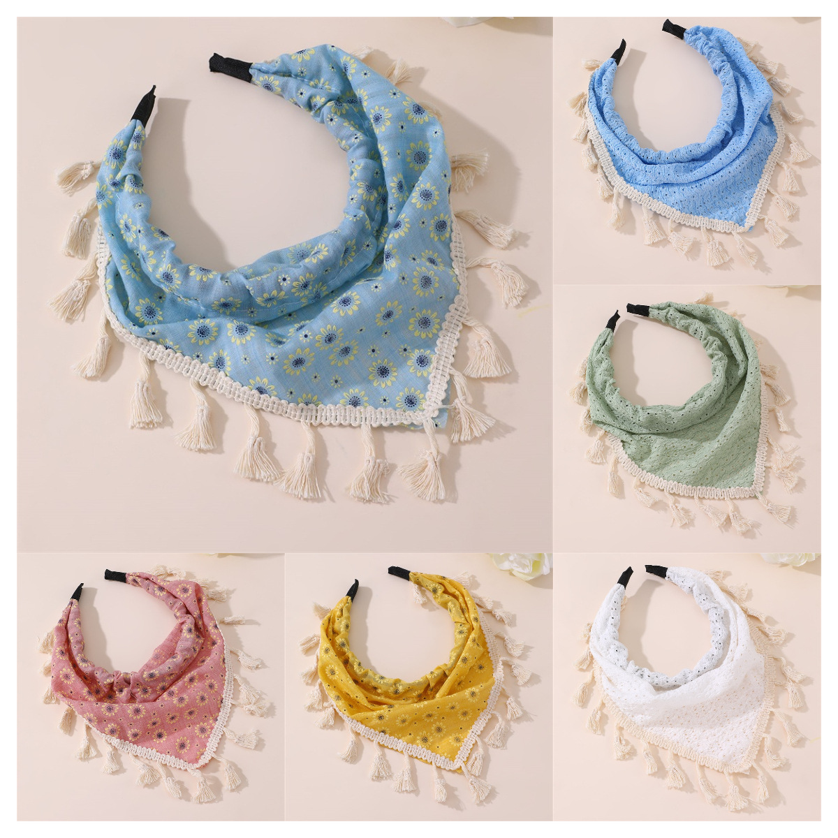 国境を越えたボヘミアンのプリントの髪飾りの小さいデイジーの布地の女の子の三角タオルのフリンジの休暇の広い辺の子供のカチューシャ