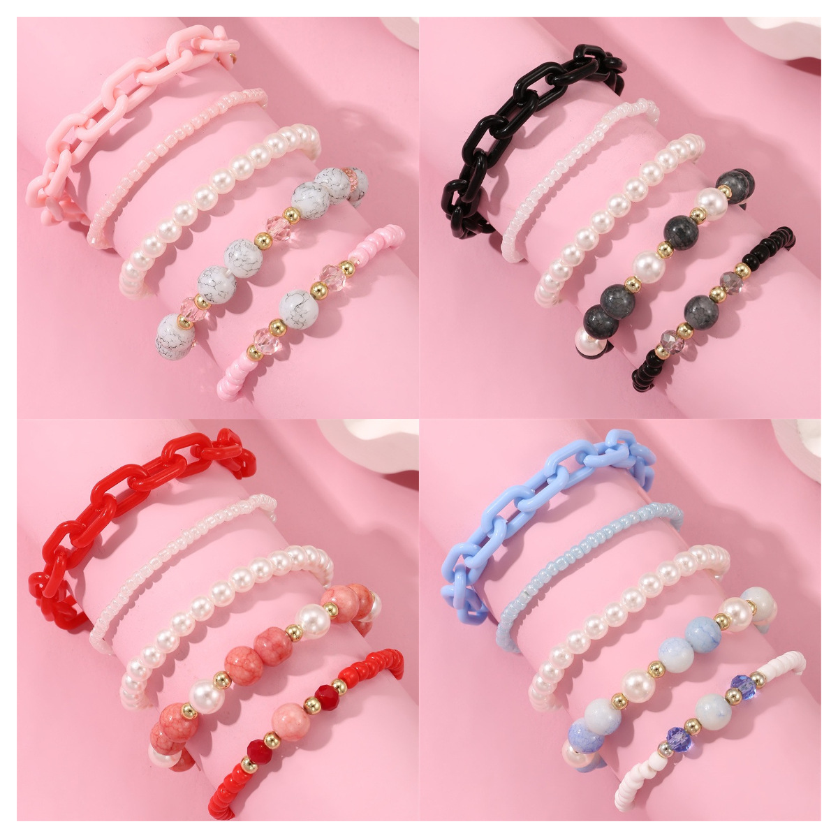 国境を越えた新しい手飾りの甘い風は真珠の米の玉の手作りの数珠のピンク系のアクリルの子供のブレスレットに似せます。