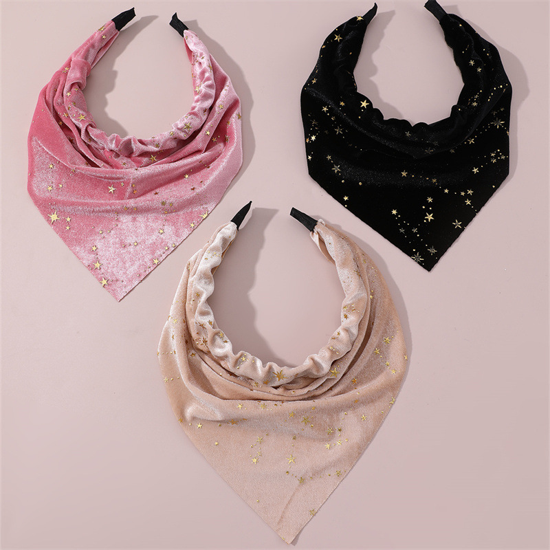 越境秋冬新作髪飾り軽豪華小衆デザインダイヤモンド布芸金色星子供カチューシャセット