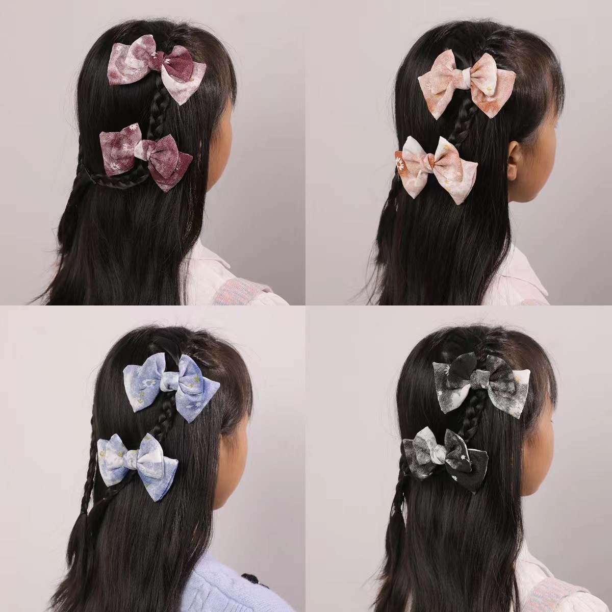 国境を越えた新しい髪飾り黒の甘いクールな風黒の愛のネット糸の蝶結びの子供のヘアピンのセット