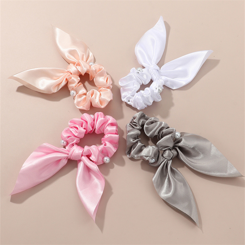 国境を越えた新しい髪飾りのシルクの純色の釘珠の簡単な金が交差してリボンのかわいい子供の大腸の輪のセットを結びます。
