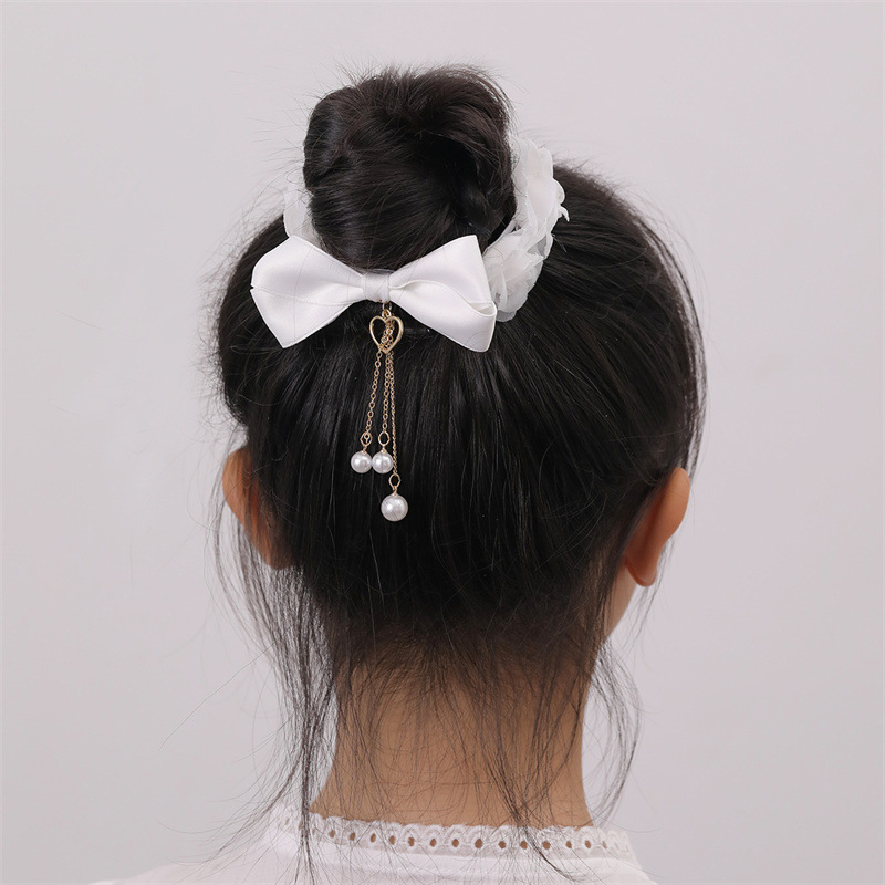 国境を越えた新しい髪飾りかわいい立体白い花蝶ネクタイ愛真珠流蘇ペンダント子供の髪輪