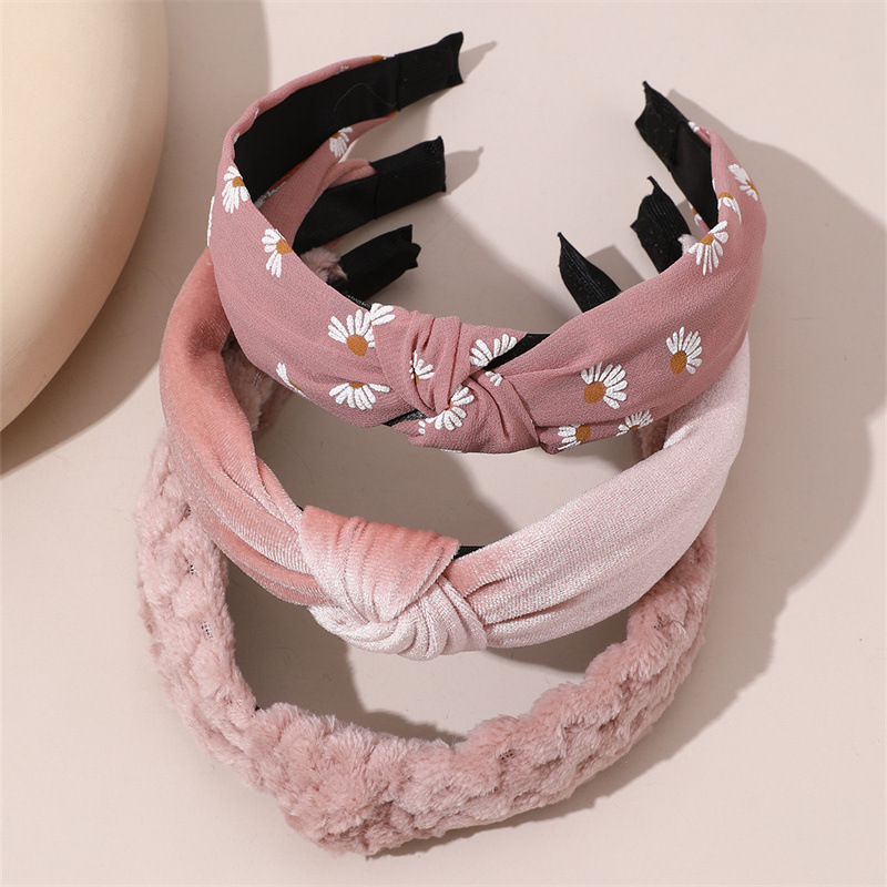 国境を越えた新しい髪飾りピンク系の広い縁が交差して小さなデイジーの布芸の甘い風の子供のカチューシャセット