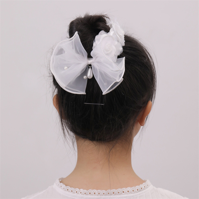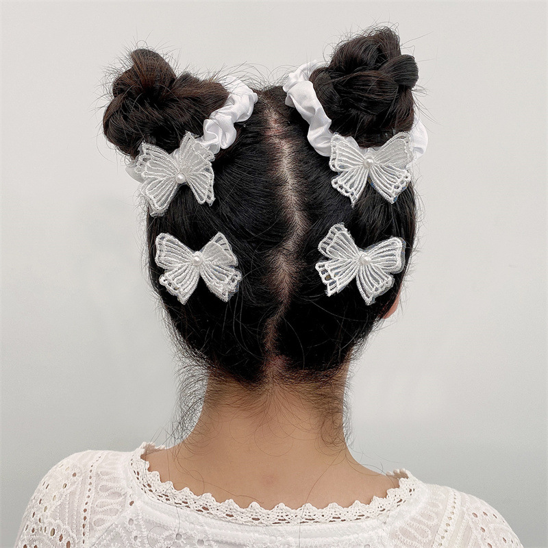 国境を越えた新しい髪飾り白い大腸輪欧根糸刺繍蝶ネクタイ釘珠児童ヘアピンセット