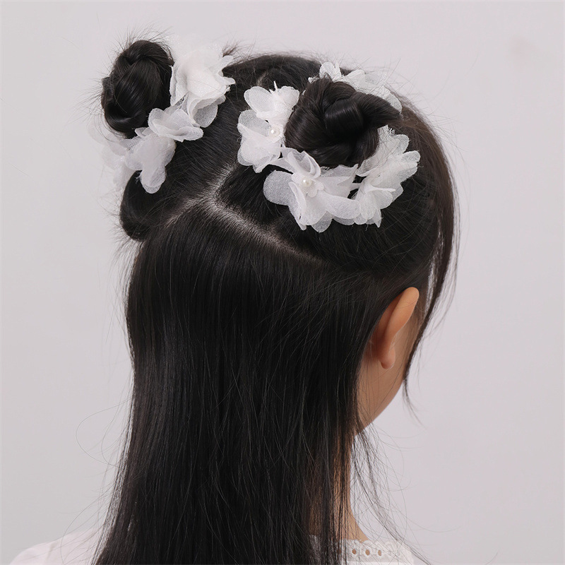 クロスボーダー秋冬新作髪飾りシンプルなデザインの白いかわいい網糸の花釘珠子供用ヘアセット卸売り