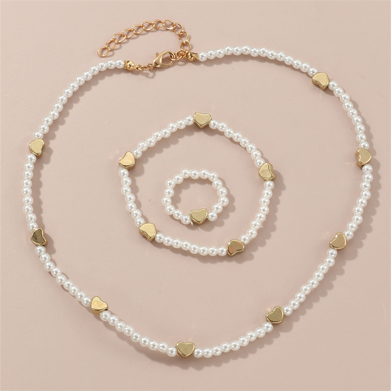 クロスボーダー悦珊の新型シンプルな真珠の愛の手の数珠の小さい清新な子供のネックレスのブレスレットの指輪のセット