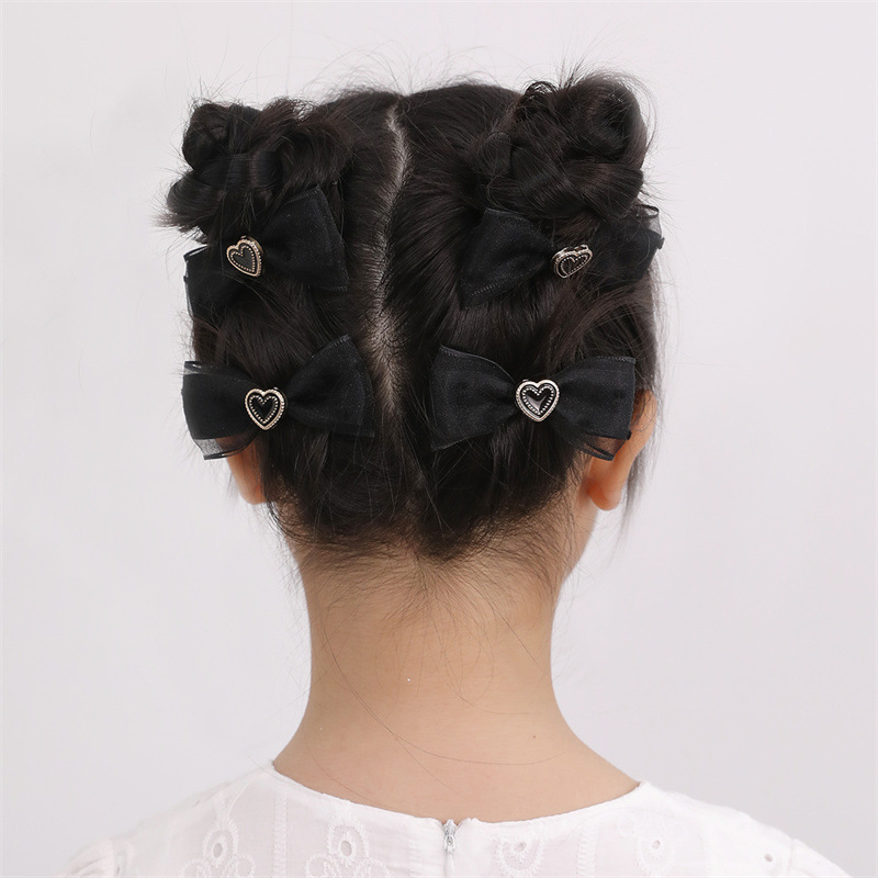 国境を越えた新しい髪飾り黒の甘いクールな風黒の愛のネット糸の蝶結びの子供のヘアピンのセット