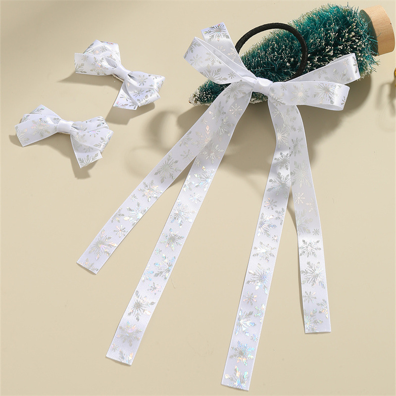 国境を越えた新しいクリスマスシリーズのシンプルなデザインの白い蝶ネクタイの雪模様の子供のヘアピンのヘアピンのセット