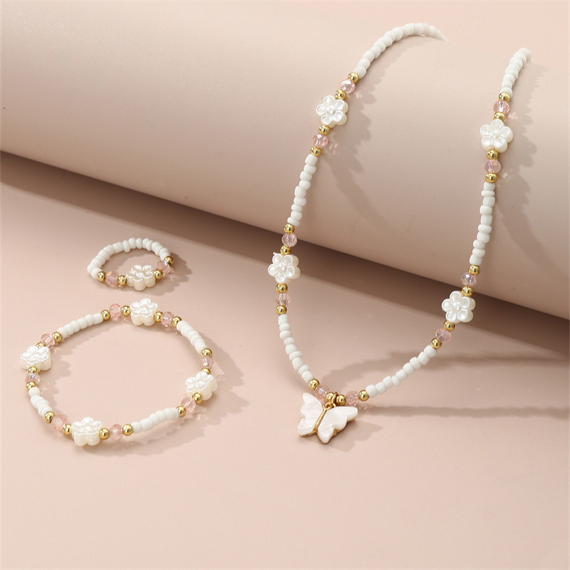 国境を越えた新しいアクセサリーの大衆デザイン米珠小花手作りビーズ蝶ペンダント子供ネックレスブレスレットセット