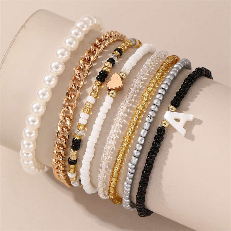 国境を越えた新しい手飾り黒系ガラス米珠模造真珠愛文字手作りビーズ子供ブレスレットセット