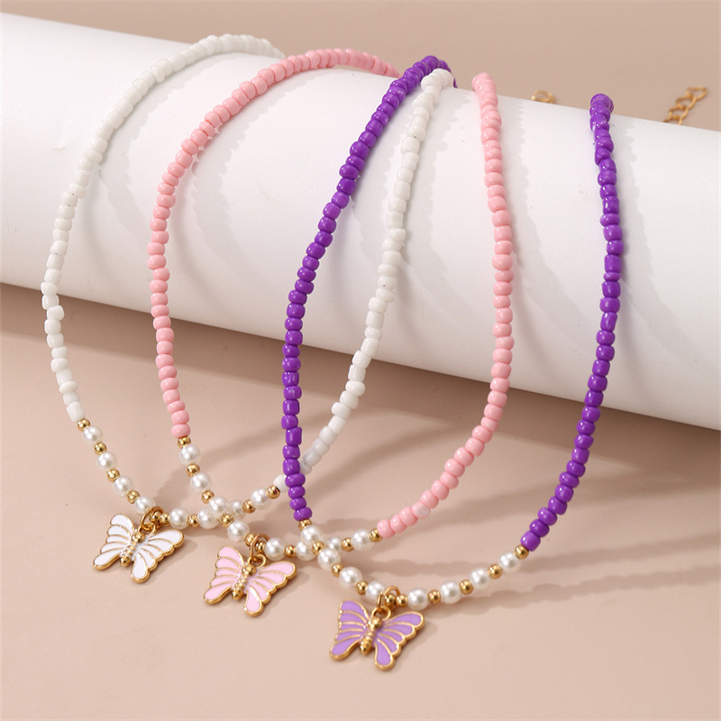 国境を越えた新しいアクセサリーボヘミアン風滴油蝶ペンダント米珠手作りビーズ子供ネックレスセット