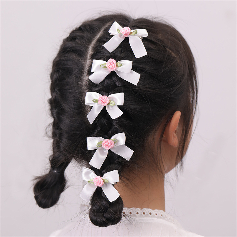 悦珊クロスボーダー新作ヘアアクセサリー緑葉ピンクローズ小花紫蝶結び甘美風子供ヘアクリップセット