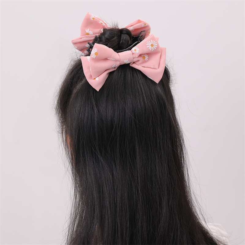 クロスボーダーの新型シンプルなデザインの髪飾りの甘い風の布芸の大きい蝶結びの小さいデイジーの頭の上で子供のヘアピンを挟みます。
