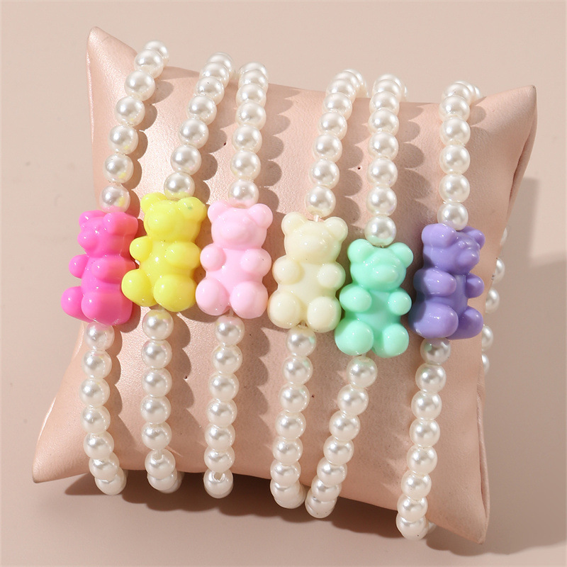 国境を越えた欧米のシンプルな子供の真珠のブレスレットかわいい樹脂の熊の手作りのビーズの小さい清新な子供のブレスレット
