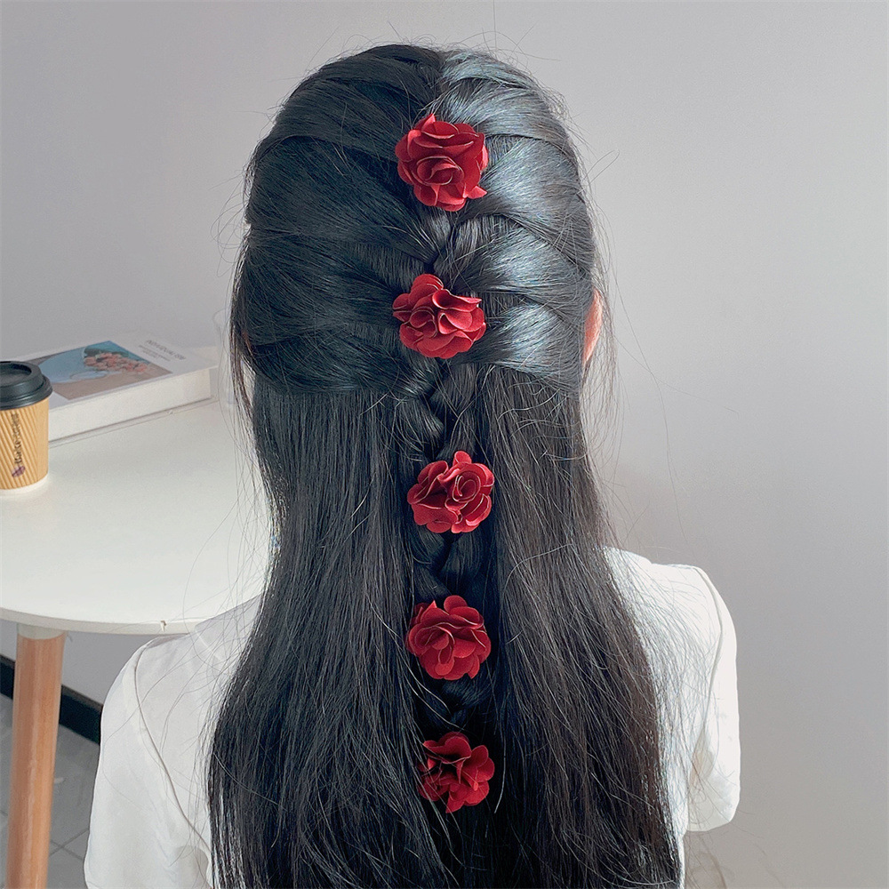 Ysh3227国境を越えた新しい布芸娟花手作り焼辺赤黒色白色花児童ヘアピンセット
