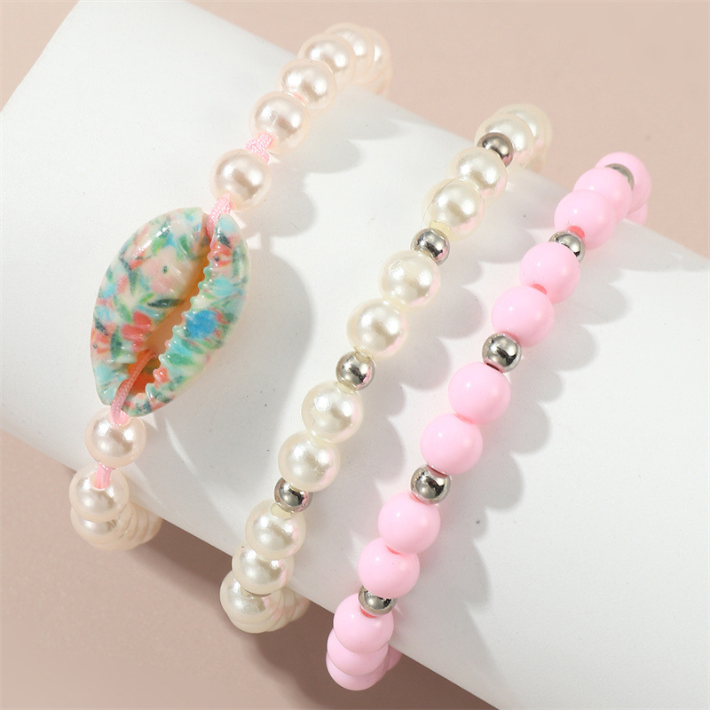 国境を越えた欧米の新型模造真珠ピンクアクリルビーズ貝殻編みひも手作りビーズ子供ブレスレットセット