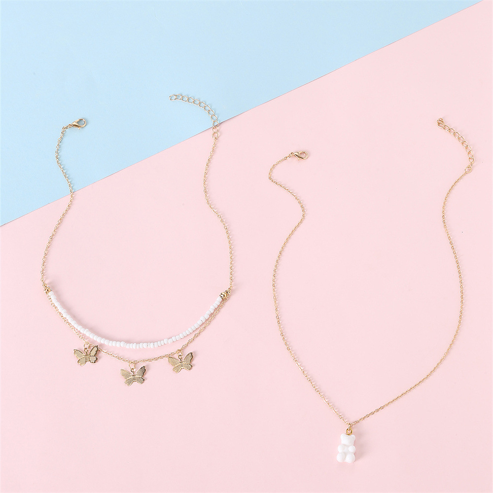 国境を越えた欧米の子供のアクセサリーの新しい蝶ピンクのかわいいベアーのペンダントピンクのビーズの子供のネックレスセット