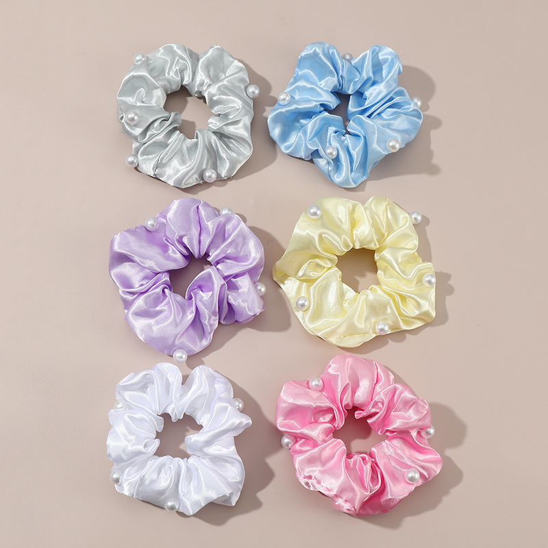 越境の新型の甘美な気質の布芸の頭飾りの真珠の大きい腸の輪の絹地のかわいいキャンディー色の子供のヘアリングのスーツ