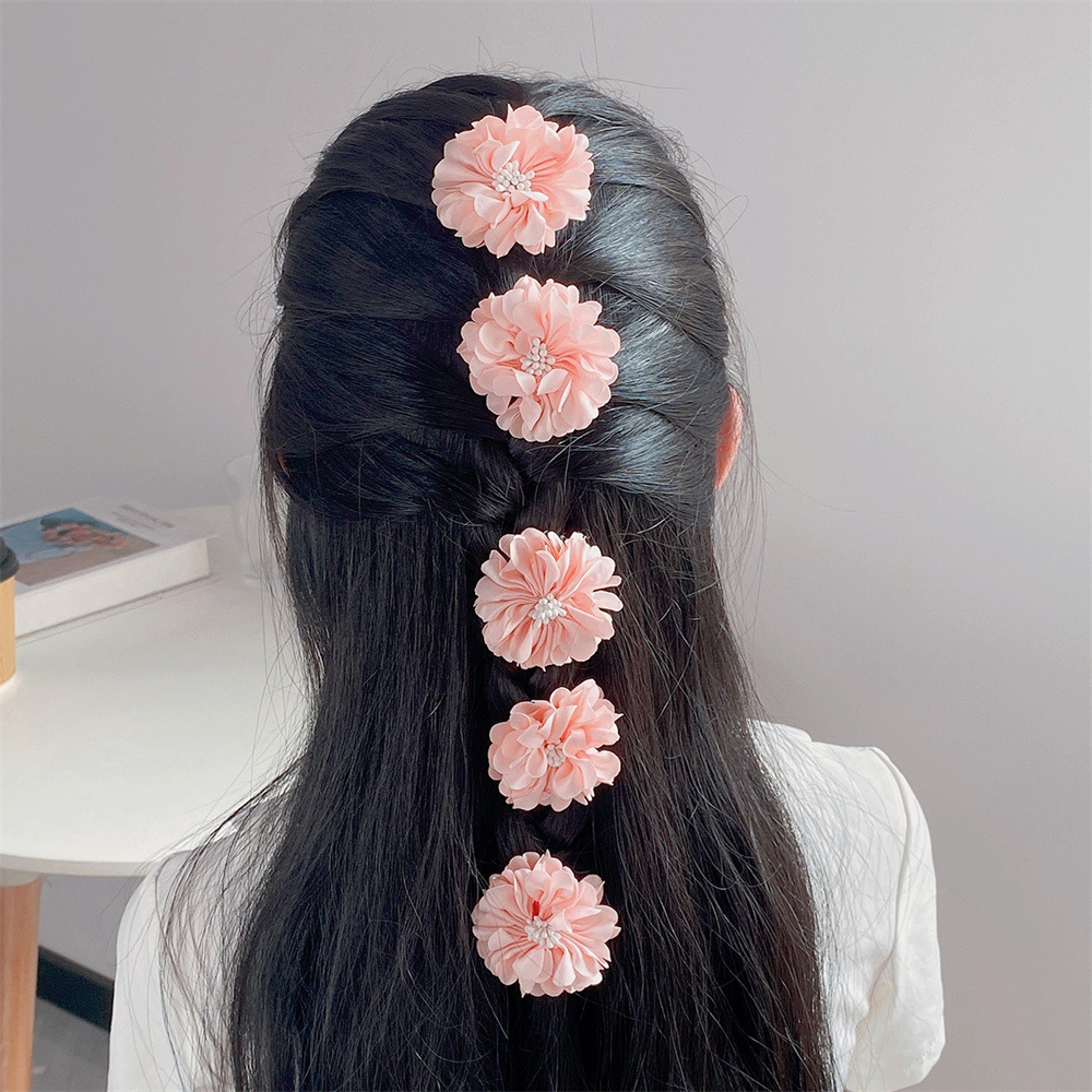 Ysh3224国境を越えた欧米の新しいかわいい髪飾りピンクの白い赤い布芸立体花児童ヘアピン