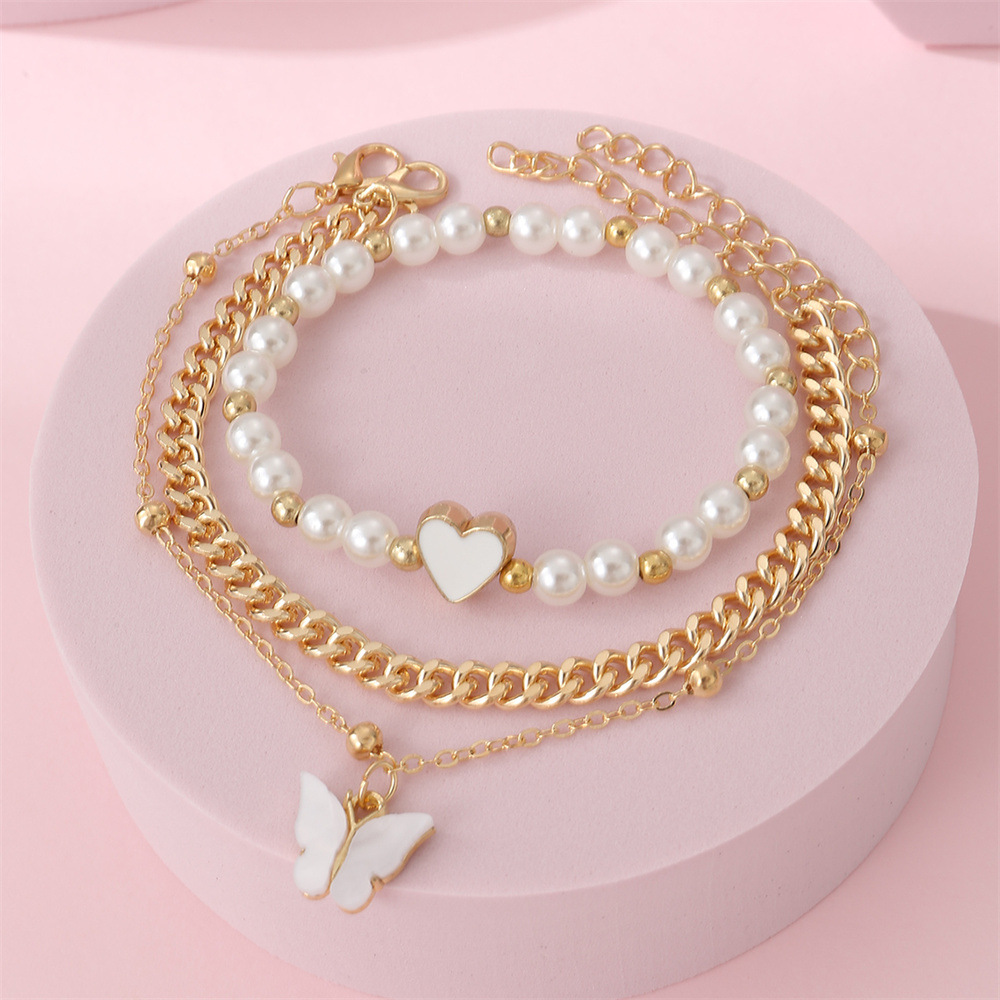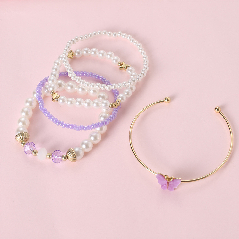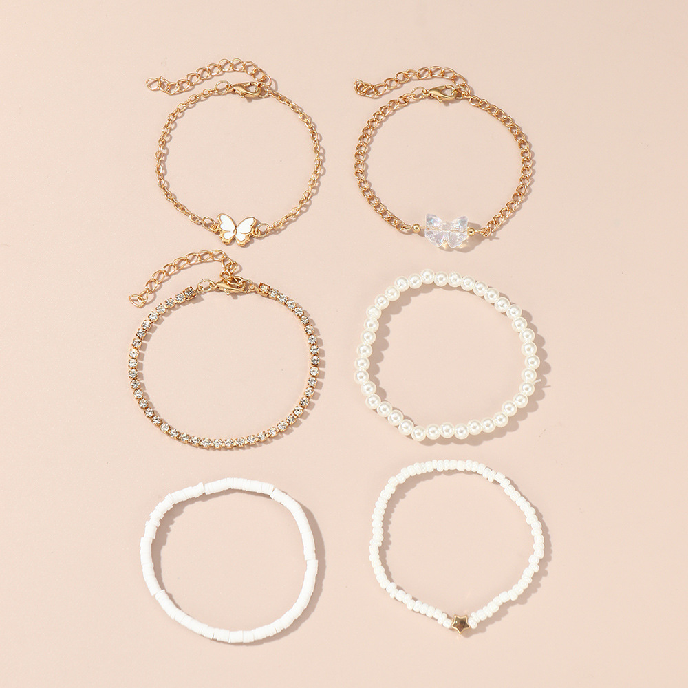 クロスボーダー蝶ペンダント韓国版清新蝶真珠手串insシンプルで可愛い気質ブレスレット5点セット