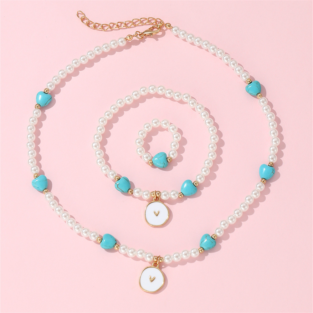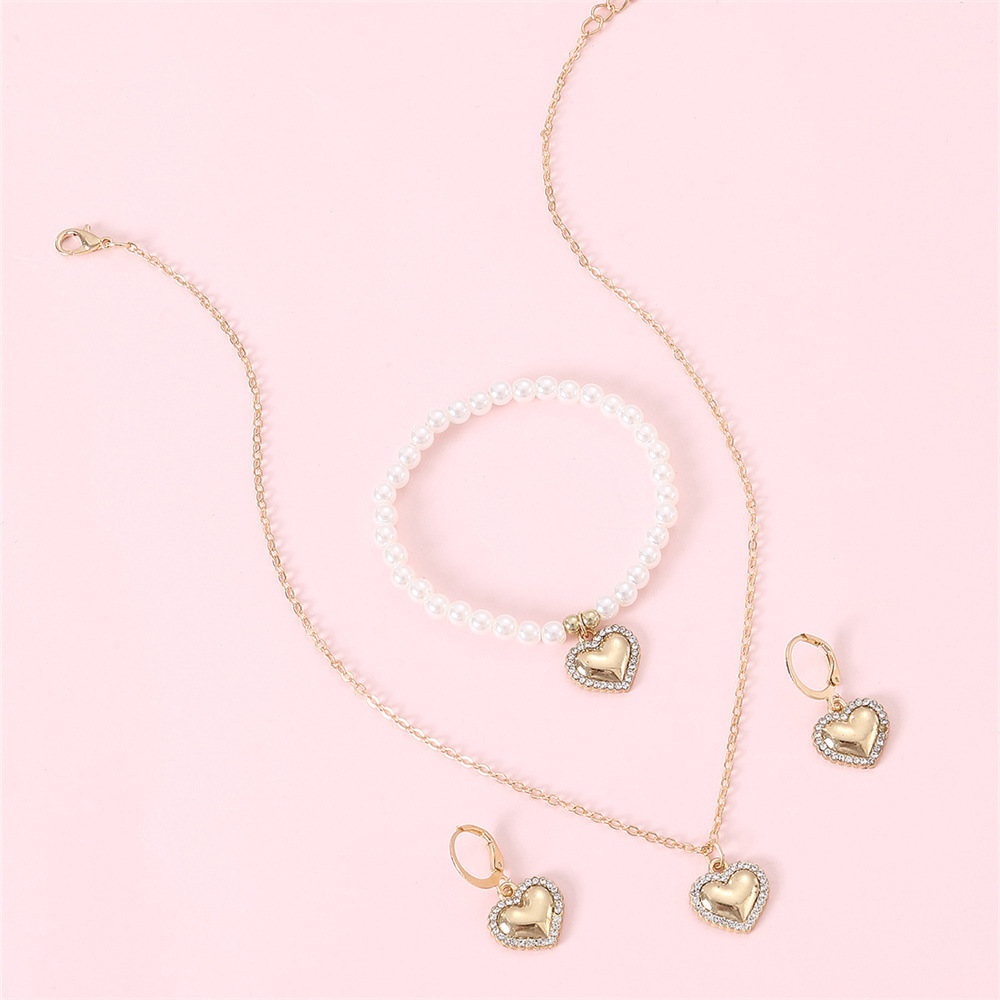 国境を越えたレトロな新しい気質の甘い模造真珠ビーズブレスレット愛ペンダントネックレス愛イヤリングセット