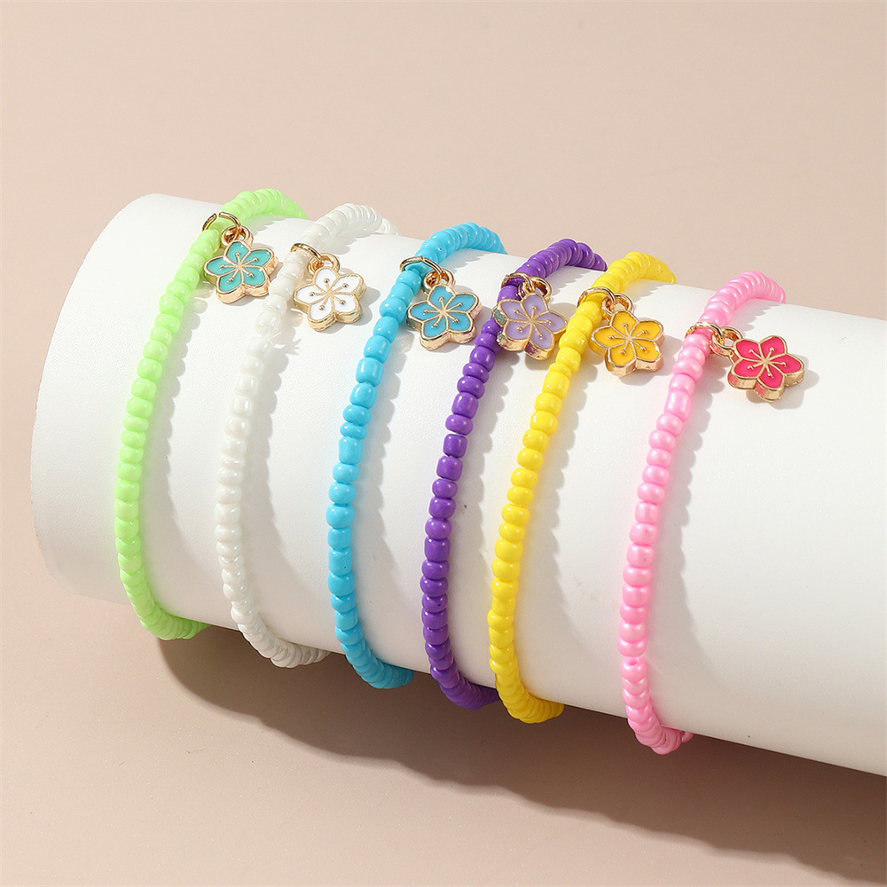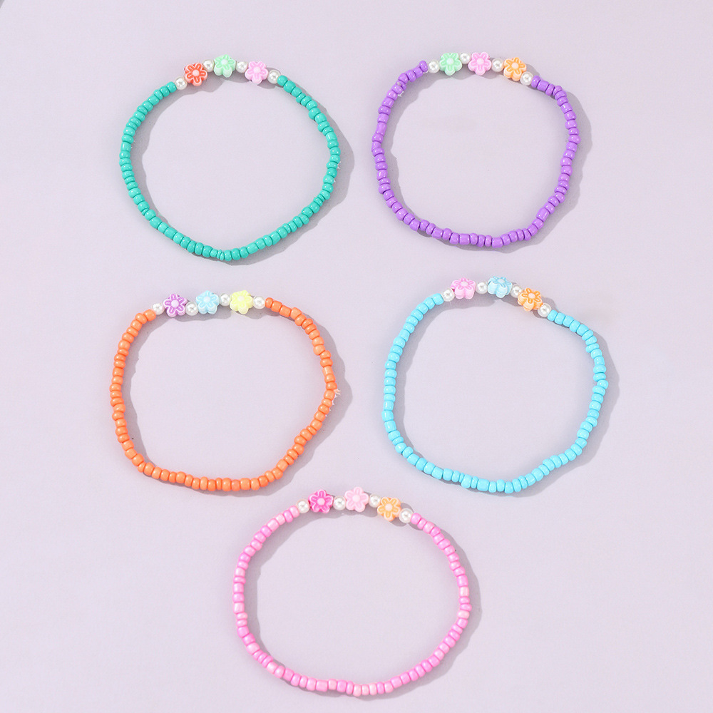 クロスボーダーのリゾート風のシンプルなファッション5本の重ね付け式のカラービーズのブレスレットの大衆はカラーの小さい花のアクセサリーを設計します。