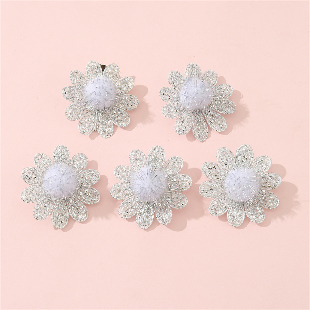 欧米のシンプルで甘い水晶の銀の玉の切れの立体の花の毛の玉のレースの子供の髪飾りのヘアピンの5つの包装の卸売り