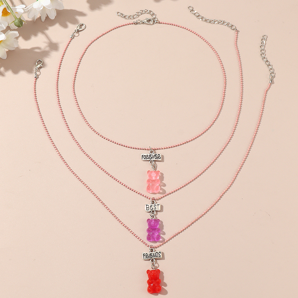 国境を越えた欧米のアクセサリーの夏のアニメの清新な子供の三色の樹脂の熊のピンクのチェーンのネックレスのセットの卸売り