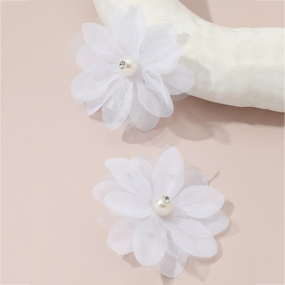 欧米の二層のかわいいガーゼの花のレースのビーズの髪飾りのレースの半透明の厚いガーゼの花のレースのヘアピン