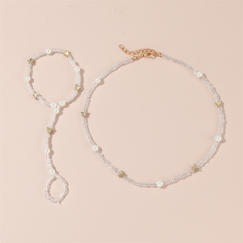 欧米の国境を越えた清新でシンプルな蝶の花のネックレスセットファッション気質の米珠ビーズのブレスレットのネックレス