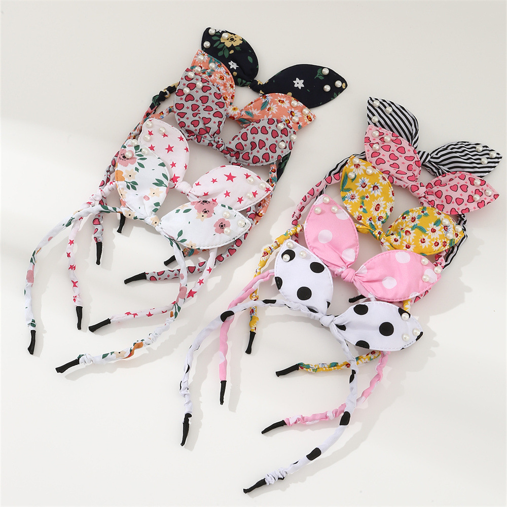 越境新作田園風子供髪飾り蝶結びウサギ耳真珠カチューシャ可愛いカチューシャアクセサリー10個入り