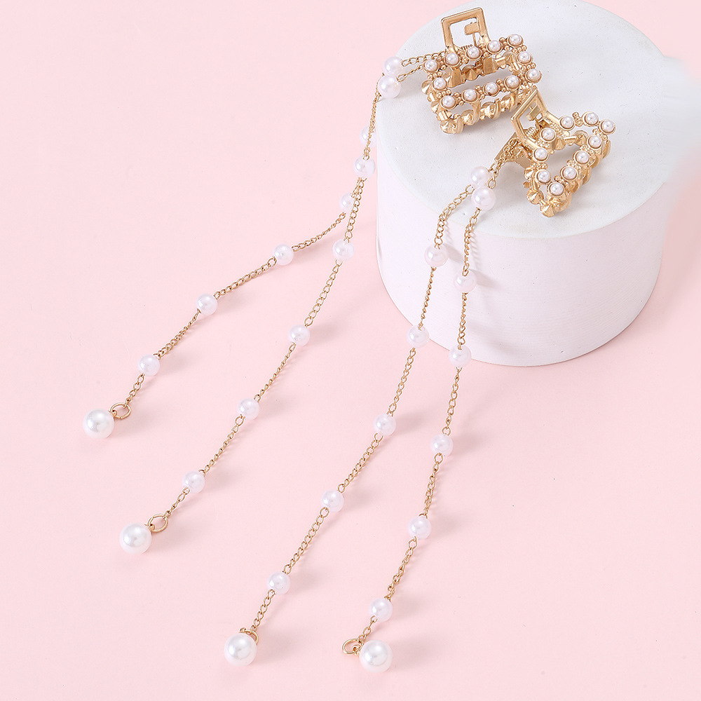 欧米の軽くて豪華で甘い気質のフリンジの真珠は金属の真珠の髪を挟みます。