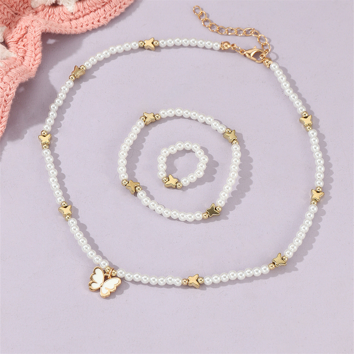 国境を越えた新製品児童宝飾品セット女性かわいい風蝶星米珠ネックレス指輪ブレスレット3点セット