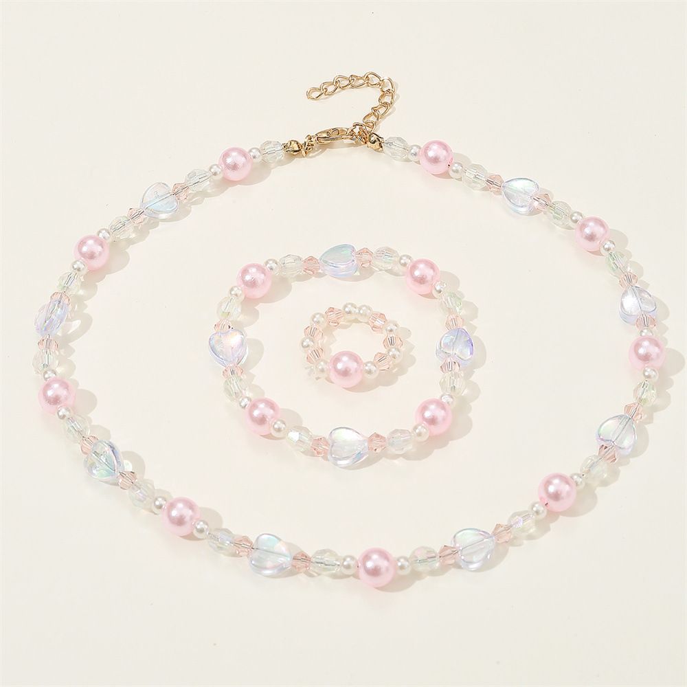 フランス式のピンクの真珠のビーズの色合わせのアクセサリーのセットの子供の小さい大衆の指輪のブレスレットのネックレスの4つのセットのアクセサリーの女性