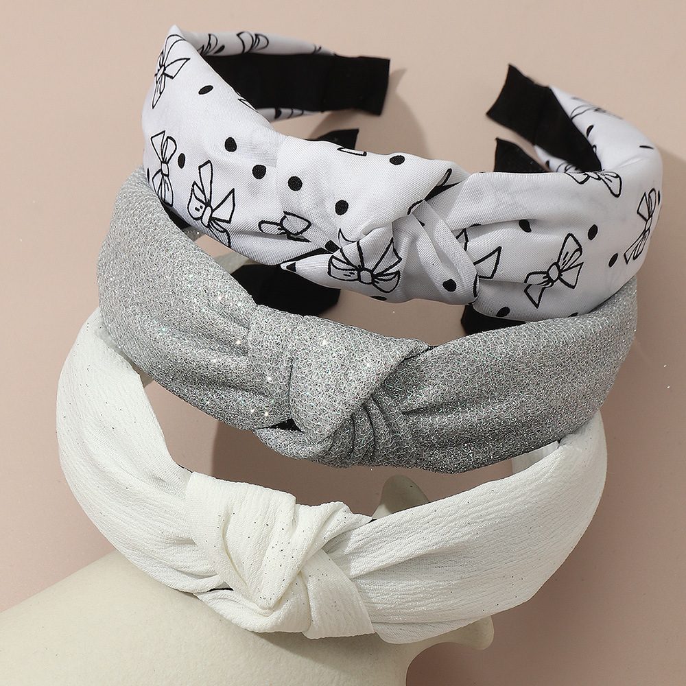 欧米の国境を越えた子供のレトロな白黒のトーテムのプリントの蝶結びのカチューシャの女の子のシンプルなワイドエッジの高い頭のトップのカチューシャ