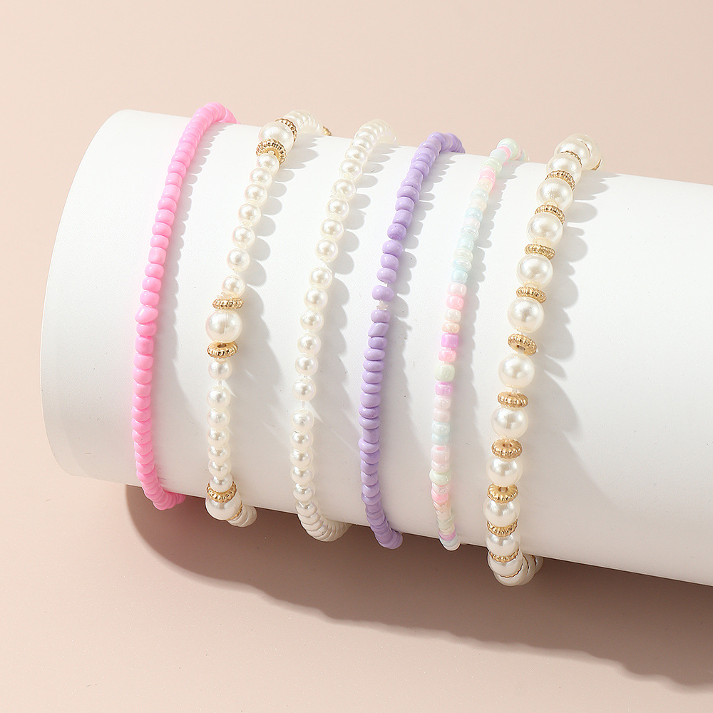 国境を越えた新型児童真珠ビーズの鎖飾り女粉紫系シンプルでフレッシュでかわいい手飾り六点セット