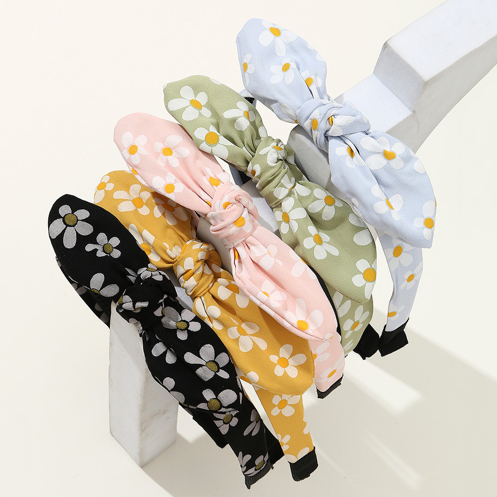 欧米のクロスボーダー韓国のヒナギクのウサギの耳の蝶結びのカチューシャの女性のかわいい清新な花の布芸の髪飾り