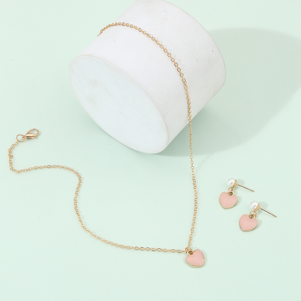 クロスボーダー児童アクセサリー卸売りピンク愛ネックレスイヤリング2点セット女性シンプル小衆少女アクセサリーアクセサリー